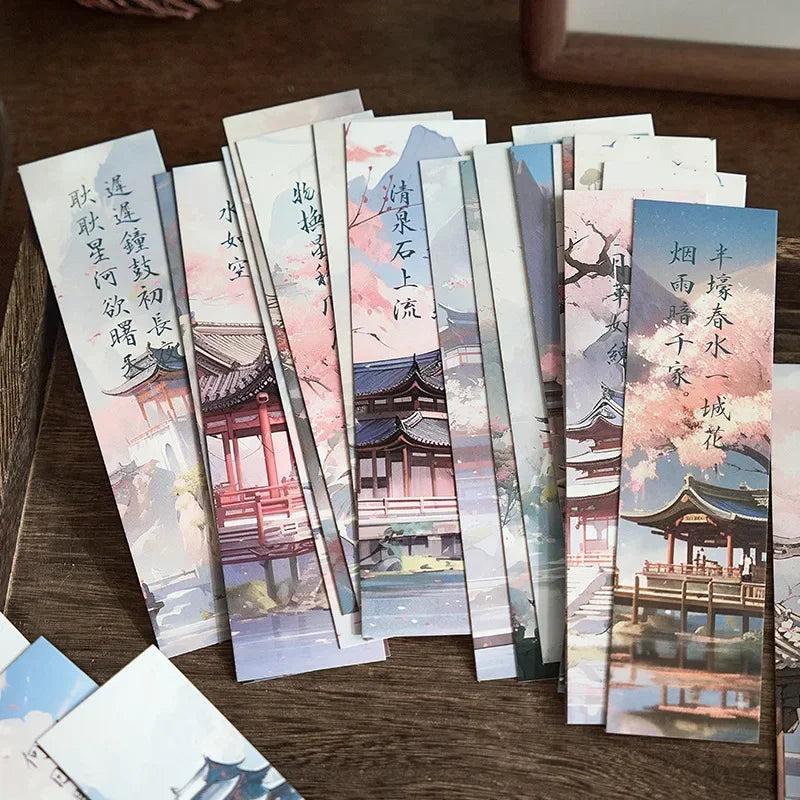 30sheet/box Retro Chinese Style Bookmarks Anime Vintage Aesethetic Flroal Palace Bookmark for Books Beauty Scenary Bookmark